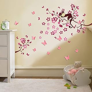 Walplus Autocollant Mural Volant Cerisier en Fleur Amovible Auto-Adhésif Mural Art Stickers Vinyle Maison Décoration DIY Salon Chambre Bureau Décor Peint Enfants Chambre Cadeau, Rose