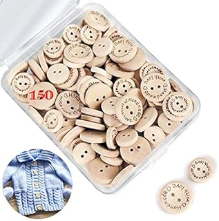 Naturel Boutons en Bois, 150pcs Handmade with Love Boutons pour l'artisanat à Tricoter à Coudre, Petit Bouton en Bois de Forme Ronde 2 Trous pour DIY Kids Scrapbooking Crafts Décorations (15mm 20mm)
