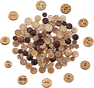 Nsiwem 150 Pièces Boutons en Bois et Coco Boutons de Bricolage Boutons Mercerie Mixte Rond Motif 2 Trous Marron Boutons pour la Couture et l'artisanat 12.5mm/ 15mm/ 18mm Modèles Aléatoires