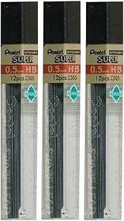 Pentel Recharge de mines pour porte-mine 0.5 mm Dureté HB Hi polymère Super (Lot de 3 tubes – 36 pièces)