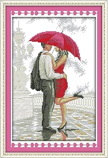 CaptainCrafts Kit de broderie au point de croix – Marche romantique sous la pluie (Blanc)