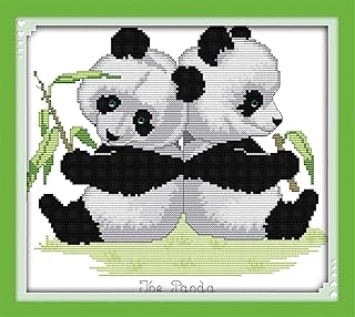 CaptainCrafts Kit de broderie au point de croix – Pandas jumeaux, blanc, STAMPED