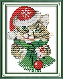 Captaincrafts Hot des nouvelles versions Patrons de Kits de point de croix kit de broderie – Chat Noël, blanc, Blanc