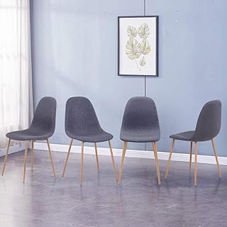GOLDFAN Chaise en Tissu Lot de 4 Chaises de Cuisine Chaises Salle à Manger Chaises de Salon avec Pieds en métal Gris