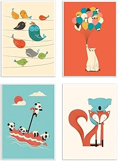 WALL EDITIONS 4 Art-Posters 20 x 30 cm - Bébés Animaux - Jay Fleck - Format :