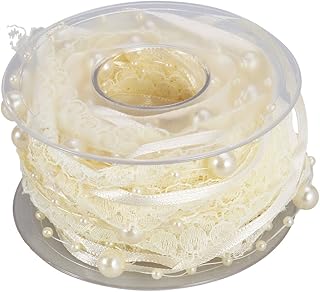HEALLILY Ruban de Perles de Dentelle Ruban D'organza Ruban de Ruban de Satin Perle pour La Décoration D'anniversaire de Mariage Bricolage Fournitures D'artisanat (Blanc)