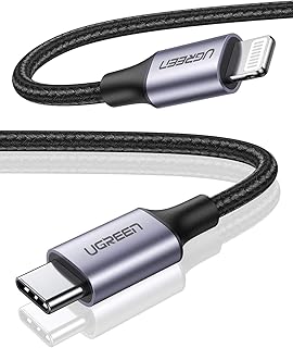 UGREEN Câble USB C vers Lightning Certification MFi Nylon Tressé Charge Rapide Power Delivery Compatible avec iPhone 12 Pro 11 Pro Se 2020 X XR XS, iPad Pro 2017, AirPods Pro(1M)