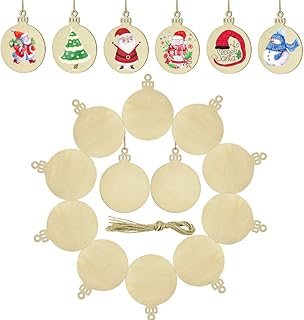 RMENOOR Ornements en Bois Tranches Rondes en Bois Pendentifs en Bois de Noël Bois Artisanat Arbre de Noël Embellissement Tranches en Bois Ronds avec 60 Cordons pour Déco d'Arbre de Noël Artisanat