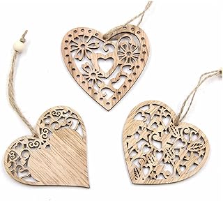 TOOGOO 12PCS 3 styles Coeur creux Ornements de pendentifs en bois Bricolage Decorations de Maison de Mariage de fete de Noel Ornements d'arbre de Noel Cadeau pour enfants