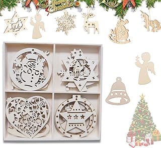 WELLXUNK® Noël en Bois Pendentifs, d'arbre de Noël Pendentifs, Décoration Suspendus pour Arbres de Noël, DIY en Bois Pendentif Décorations, Pendentif Arbre de Noël à Suspendre Ornements (7 pièces)