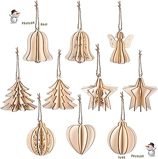 Huahao Pendentifs de Noël Ornements d'arbre de Noël Décoration en Bois 9 pièces 3D Décoration de Noël en Bois Pendentifs en Bois Pendentifs d'arbre de Noël pour la décoration de fête de Noël