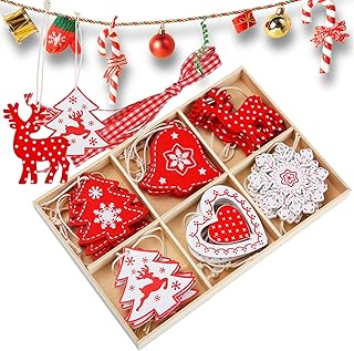 QIMMU Déco Noël en Bois,Ensemble de Ornements d'arbre de Noël Accessoires de Noël Décoratifs de Boule Noël Bois Pendentifs en Bois Décoration pour Sapin de Noël 12PCS
