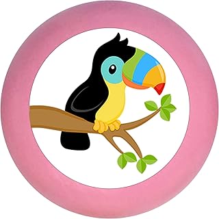 Bouton de placard « Toucan » en bois de hêtre rose moyen pour chambre d'enfant - 1 pièce - Animaux sauvages - Animaux de la jungle - Rêve enfant
