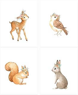 KAIRNE Lot de 4 Affiche Aquarelle Animaux et Fleurs,Animaux Posters Décoratifs pour Chambre d'enfant,Impressions d'art pour Bébé Fille et Garçon Chambre,Jungle Animaux Toile Mur Peinture,20×25cm