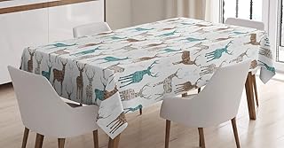 ABAKUHAUS Cerf Nappe, Vieux Texte Animaux de Noël, Linge de Table Rectangulaire pour Salle à Manger Décor de Cuisine, 140 cm x 200 cm, Turquoise Marron Beige