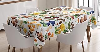 ABAKUHAUS Champignon Nappe, Champignons Sauvages Bio, Linge de Table Rectangulaire pour Salle à Manger Décor de Cuisine, 140 cm x 200 cm, Multicolore