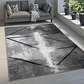 Paco Home Tapis De Salon Vintage Poils Ras Effet 3D Motif Géométrique Moderne Gris, Dimension:120x170 cm