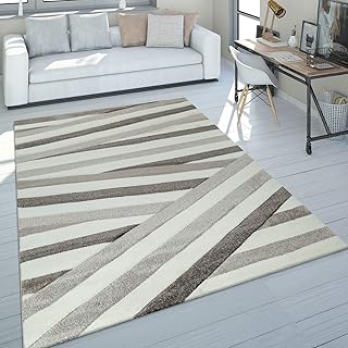 Paco Home Tapis De Salon Moderne Poils Ras Design Scandinave Motif Losanges Beige Blanc, Dimension:120x170 cm