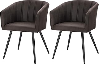 Lestarain Lot de 2 Chaises de Salle à Manger Chaises de Cuisine Chaises de Salon avec Accoudoirs Chaise Rembourrée Siège en Tissu Pieds en Métal Brune Foncé