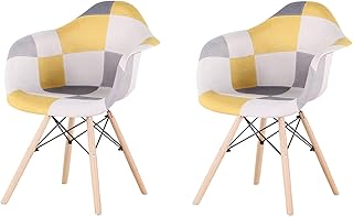 ArtDesign FR Lot de 2 chaises de salle à manger en tissu patchwork avec accoudoirs pour bureau, salon, salle à manger (jaune)