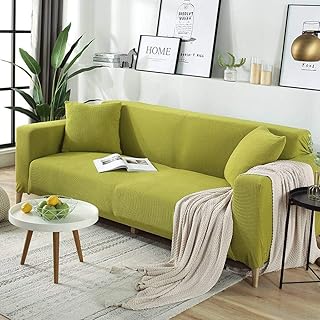 Mqing Haute Extensible Housse de Canapé, Doux Epais Anti-dérapant Résistant à l'usure Lavable Meubles Protecteur Revêtement de Canapé Convient à 1234 Places Canapé-4 Places 235-300cm-vert jaunâtre
