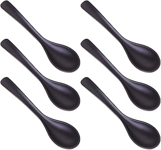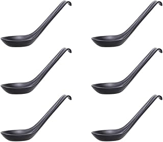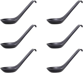 BESTonZON 6pcs cuillères à Soupe de Nouilles japonaises à la mélamine Chinoises cuillères japonaises Vaisselle avec Crochet (Noir)