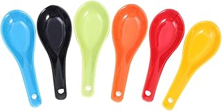Yardwe 6 Pcs Cuillères en Mélamine Cuillères à Riz Asiatique Chinois Won Ton Cuillère à Soupe (Couleurs Mélangées)
