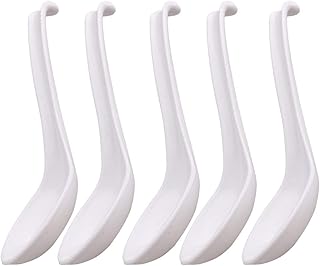 ranrann 5Pcs/10Pcs Cuillères à Soupe Mélamine de Style Japonais Cuillères à Riz Asiatiques Chinoises à Long Manche Crochet Vaisselle pour Restaurants et Hôtels 10Pcs Blanc Taille Unique
