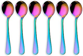 Yaootely Cuilleres a Soupe Arc-en-Ciel, Cuilleres Rondes en Acier Inoxydable, Ensemble De 6 (Cuillere a Soupe)