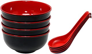 ISKYBOB Cuillères et Bols à Soupe Set, Cuiller à Apéritif Bols à Servir en Mélamine Style Chinois, Inclus 4 Cuillères, 4 Bols