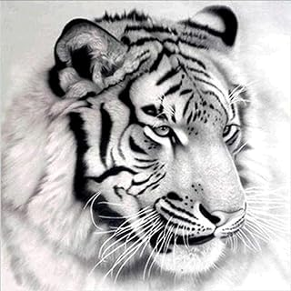 Kit de Peinture Diamant, Broderie Diamant kit Complet,Peinturepar numéro,Peinture en Diamant 5D DIY de Tigre Noir et Blanc pour décoration Murale 30 x 30 cm