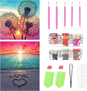 Diamant Painting, Kit D'outils de Broderie Diamant 5D, Outils de Peinture de Diamant Accessoires, DIY Diamant Peinture Point de Amour de Plage et Pissenlit, pour Décoration Murale de la Maison (Rose)